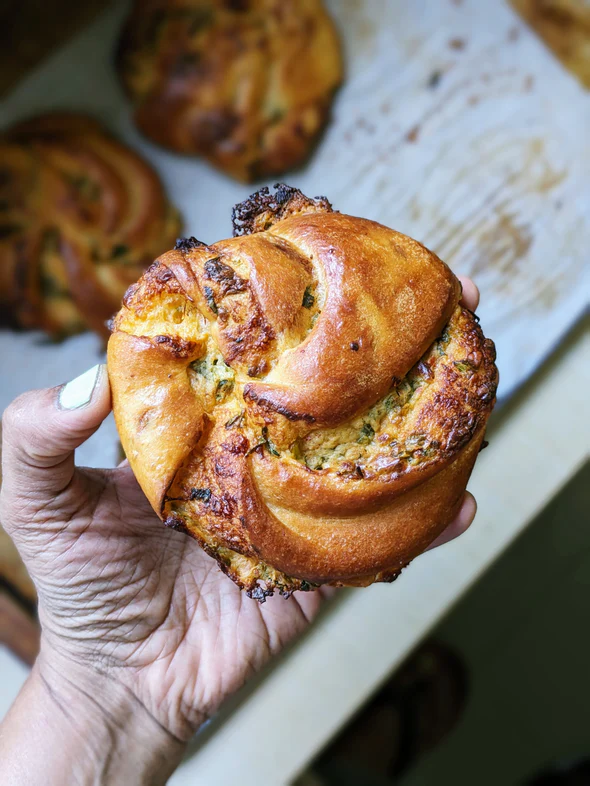 A classic vanilla sponge filled with pineapple jelly made with fresh pineapple juice along with a chunky pineapple compote, allowing the natural tartness of the fruit to shine. The cakelet gets a generous crown of a simple & light vanilla cream optimally sweetened with white chocolate which rounds off the ensemble beautifully. Altogether it’s sweet, slightly tart, buttery & downright addictive.